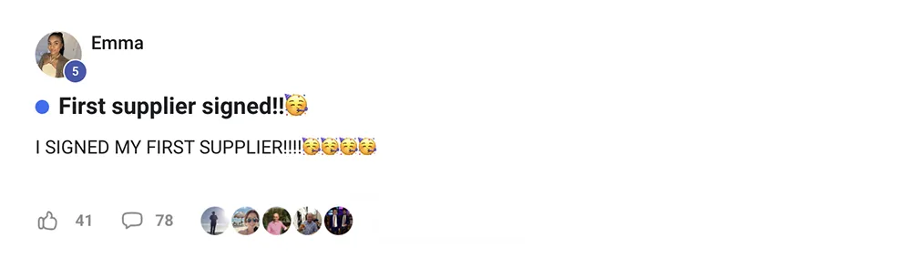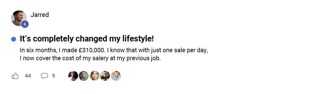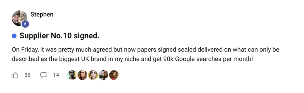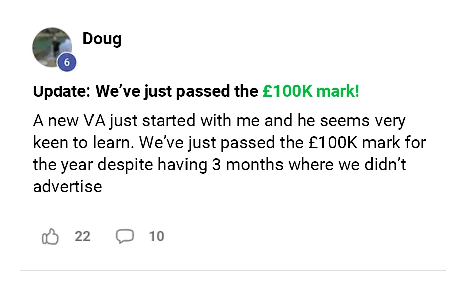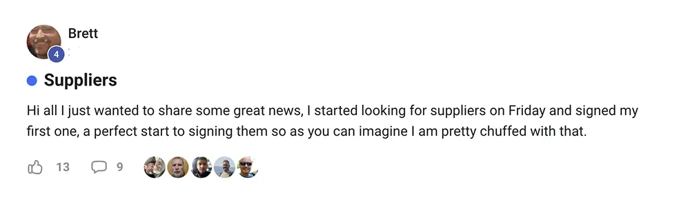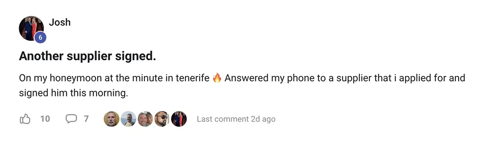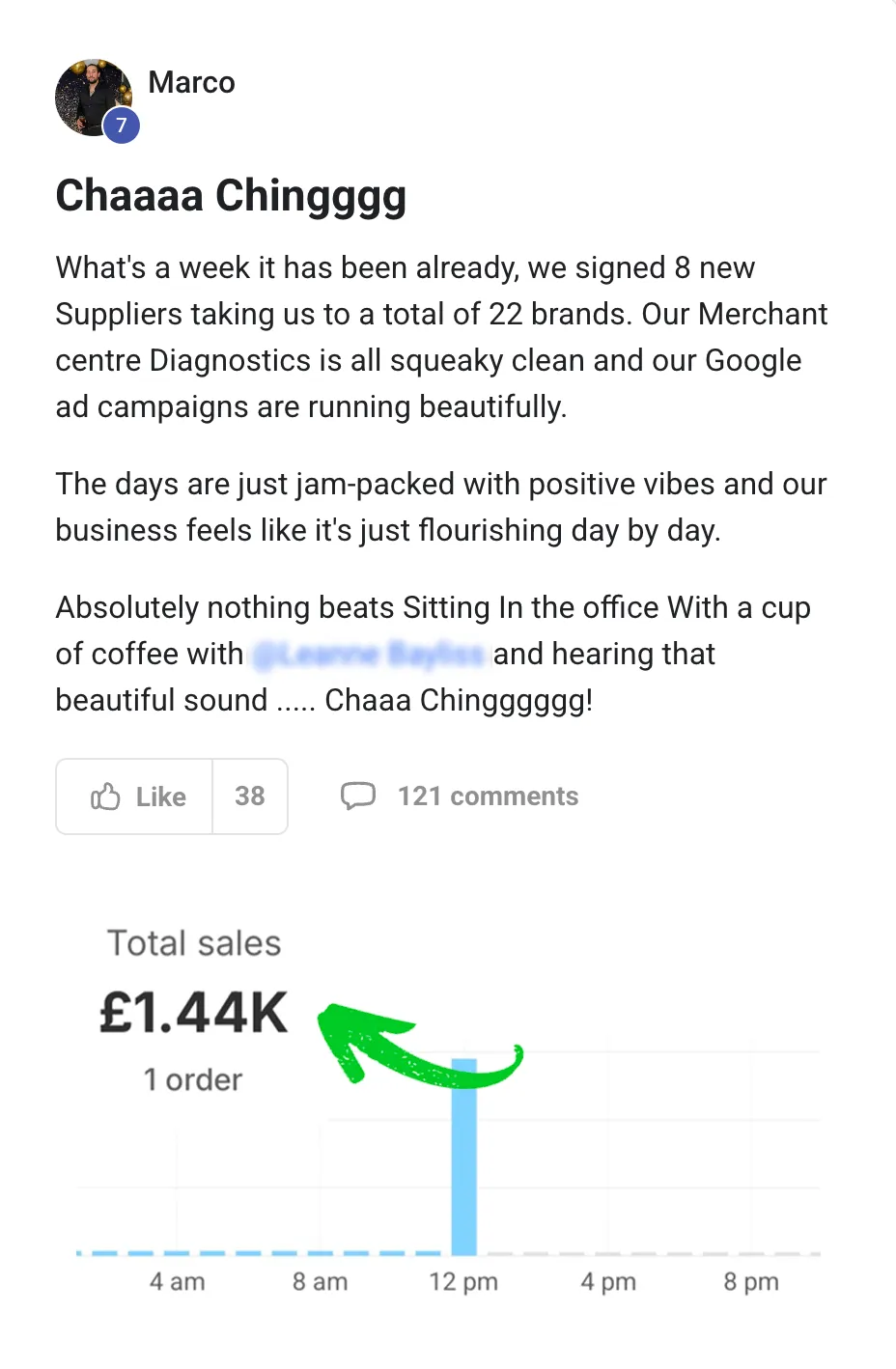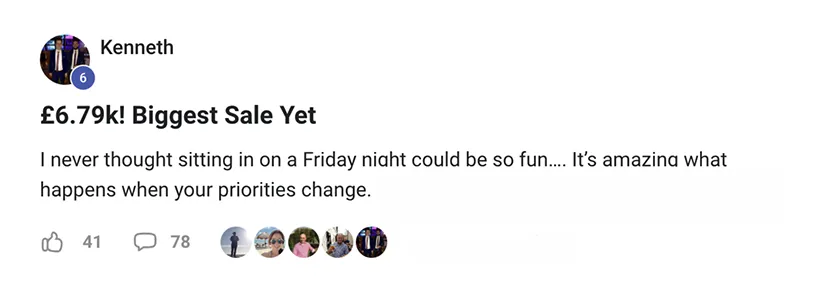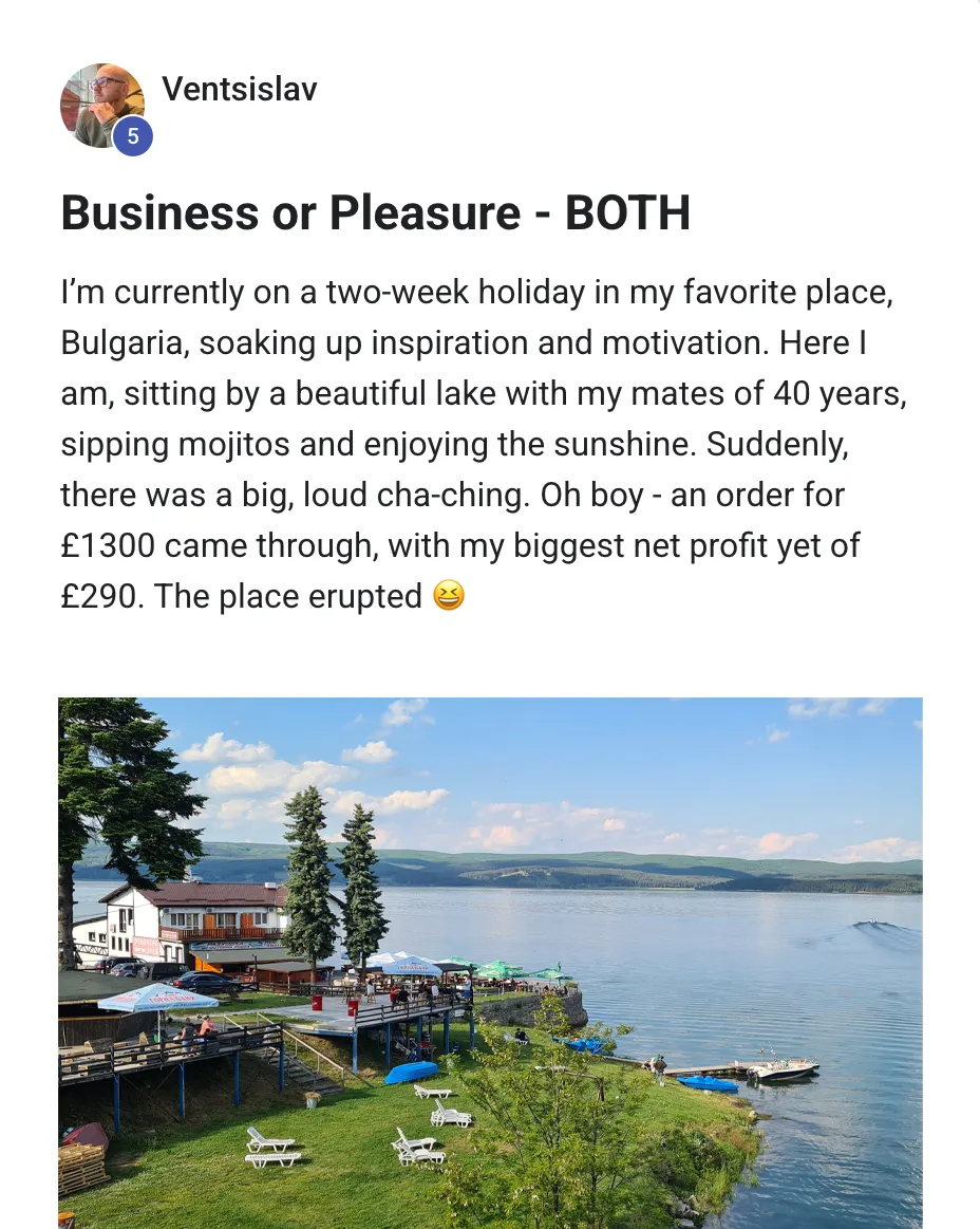 As well as that, you’ll be part of a thriving community of other UK e-commerce entrepreneurs - all building their businesses together, sharing wins, and helping each other stay accountable.