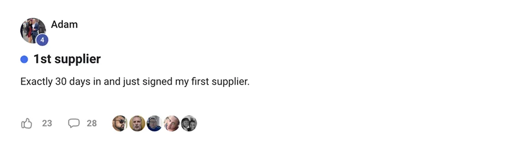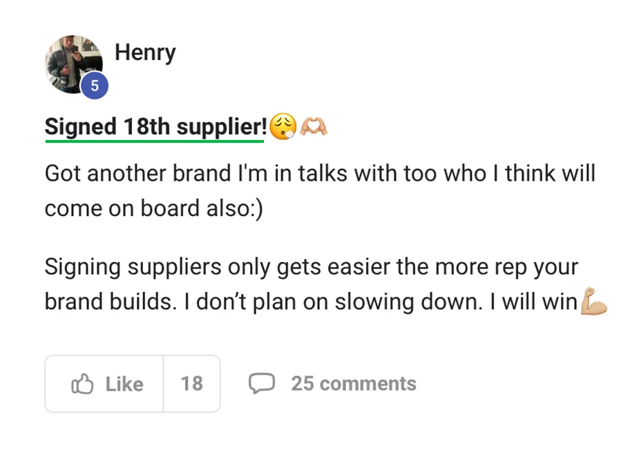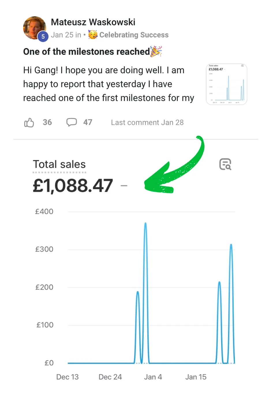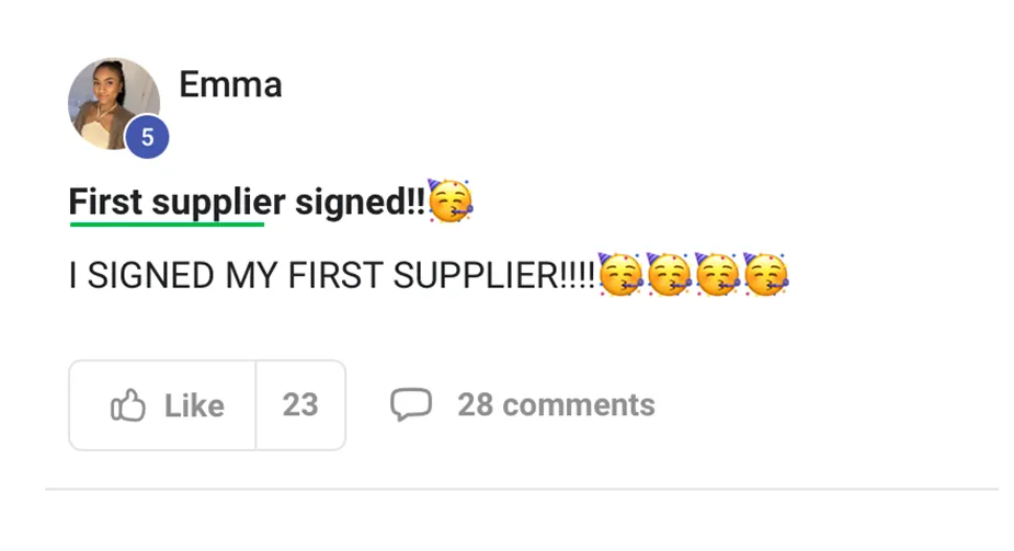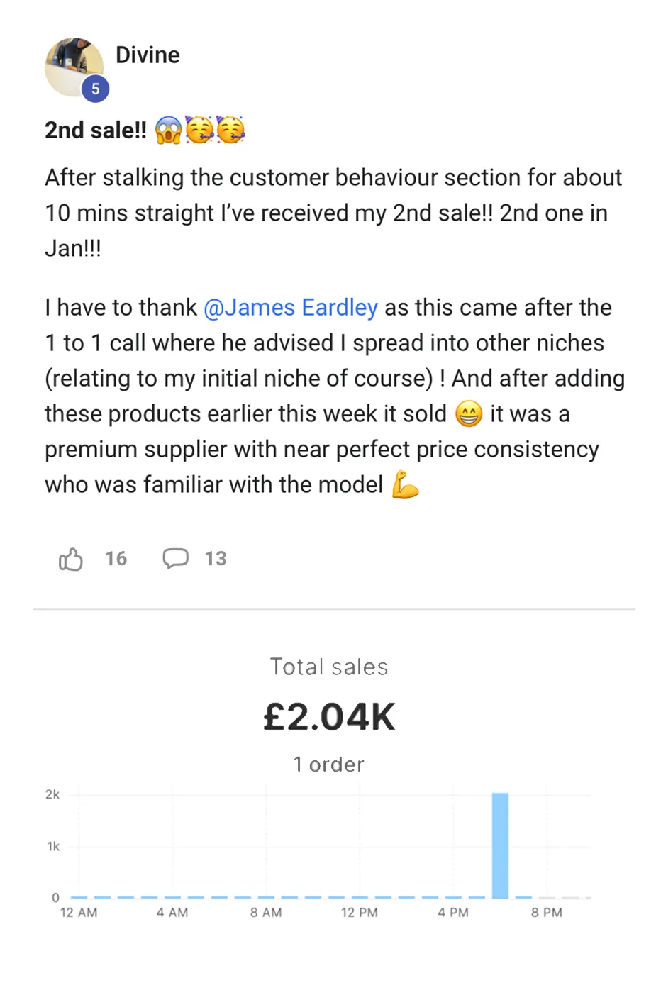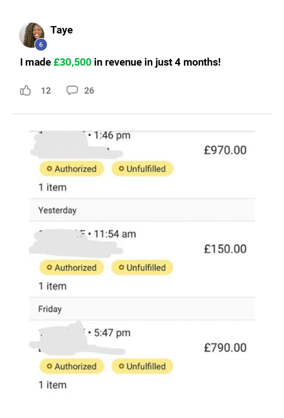 As well as that, you’ll be part of a thriving community of other UK e-commerce entrepreneurs - all building their businesses together, sharing wins, and helping each other stay accountable.