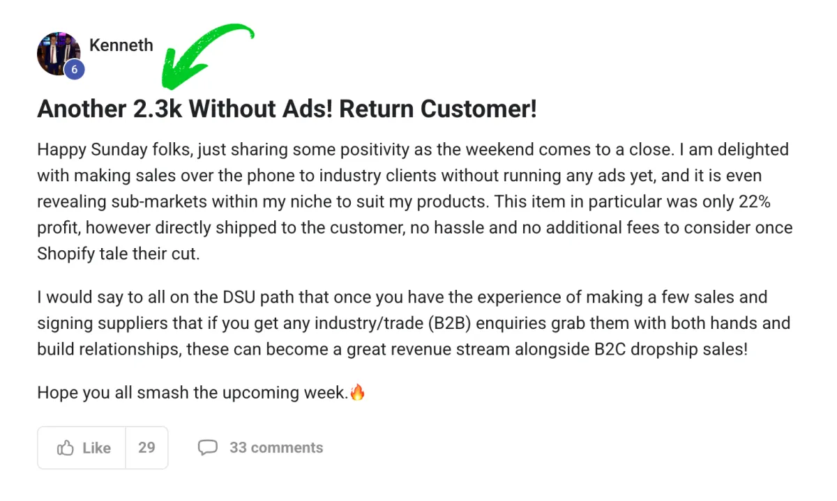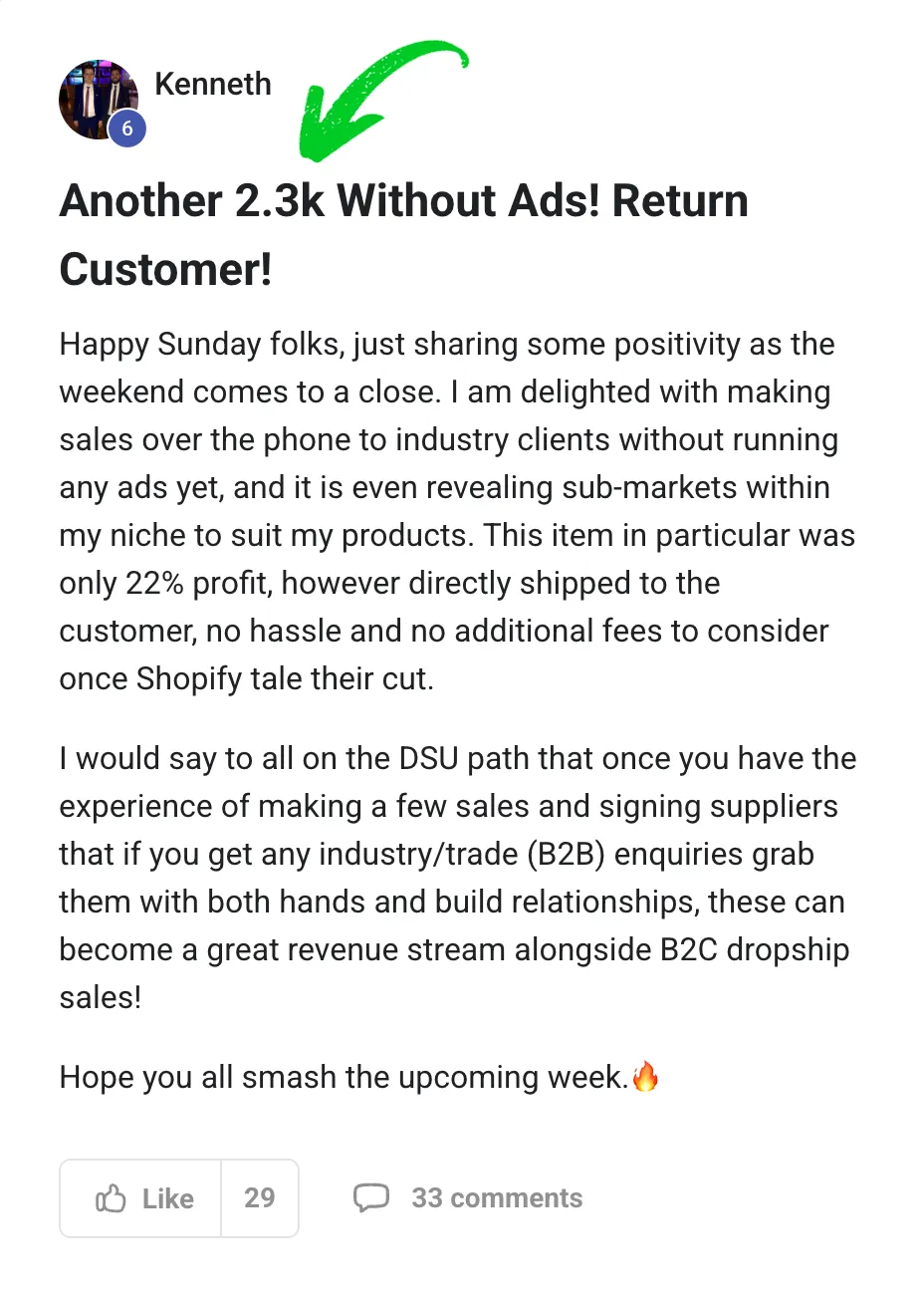 That said, you can hear from dozens of our members sharing their real results, stories, and experiences with Dropship Unlocked.