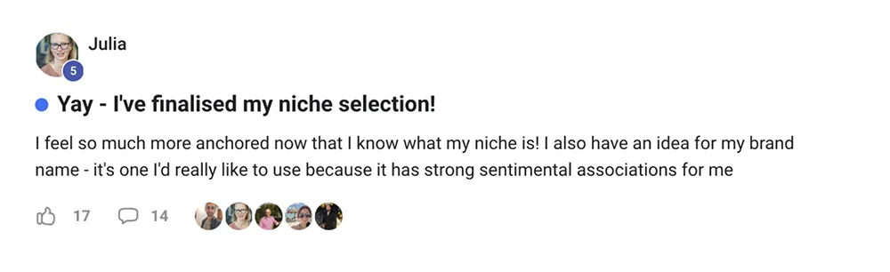 Inside the program, you’ll be able to connect with current members directly through our private community - but for now, we recommend hearing from them in their own words through our review library and YouTube channel.
